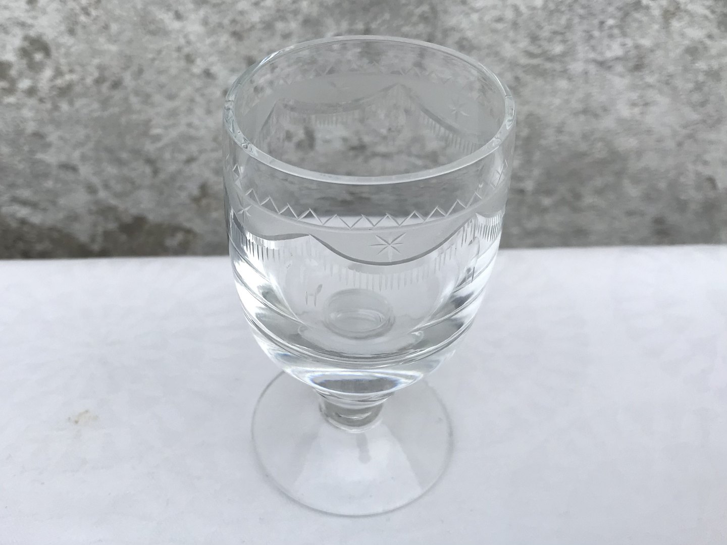 Glass with garland sandings from Lindahl Nielsen's glass grinder, stem with button, Port wine, 9.8 cm high, 5.5 cm in diameter * Perfect condition *