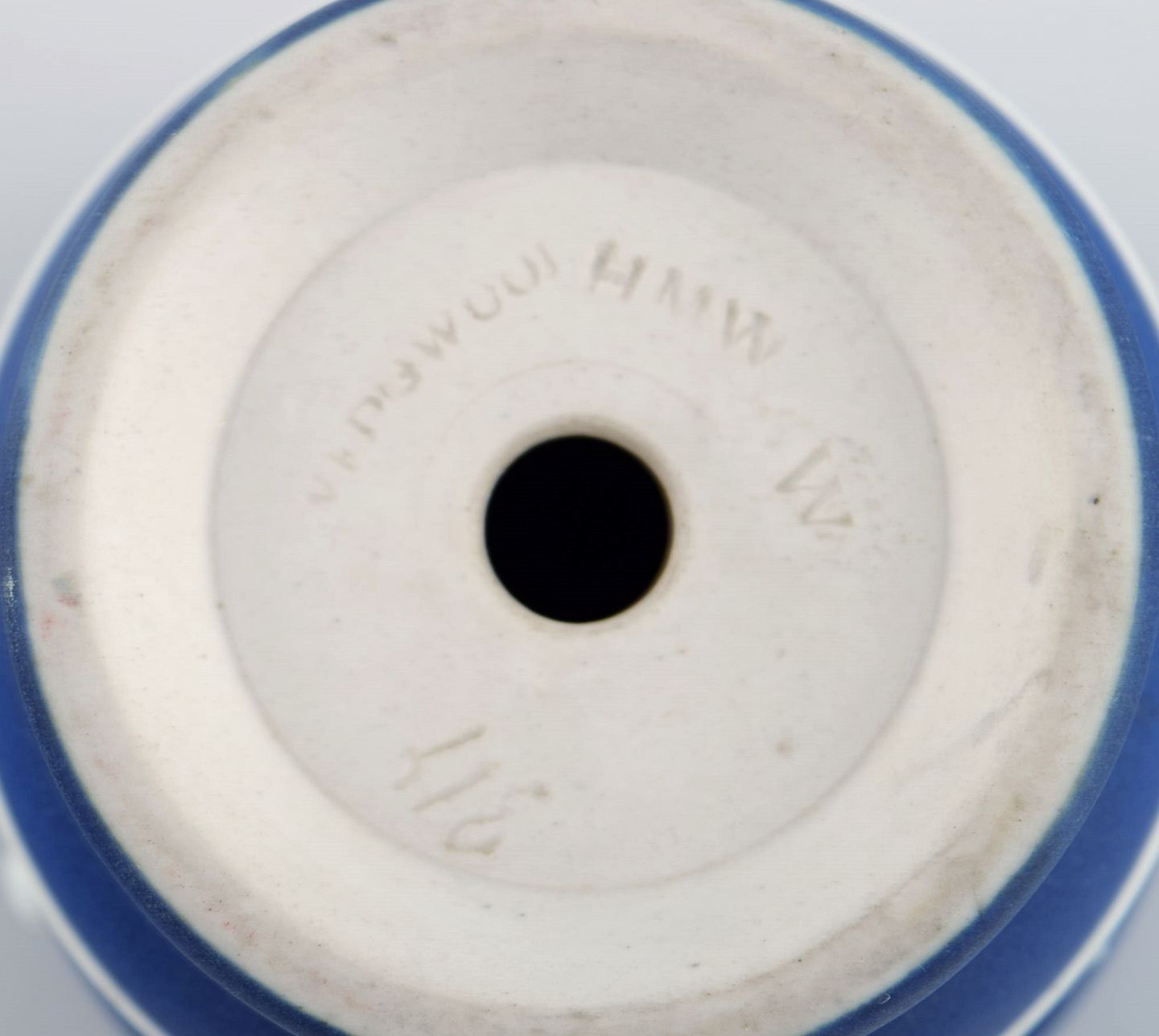 Wedgwood, England. Three bowls / dishes and a vase in black, green and blue stoneware with classicist scenes in white. Early 20th century.
