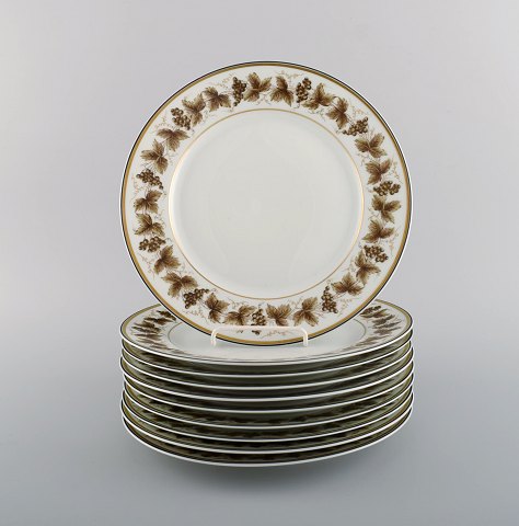 10 Limoges porcelain dinner plates with hand-painted grape vines and gold decoration. 1930s / 40s.