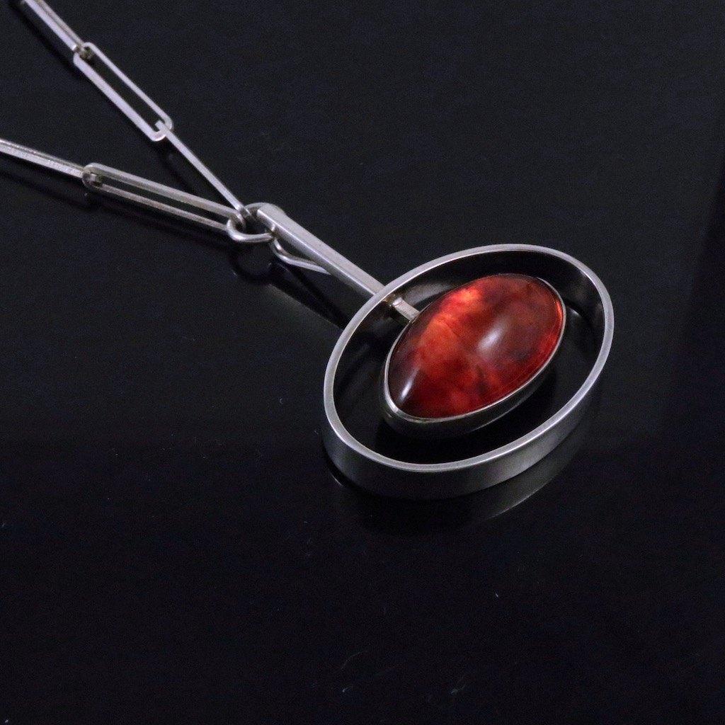 N.E. From - Denmark. Sterling Silver Necklace / Pendant with Amber. 1960s