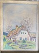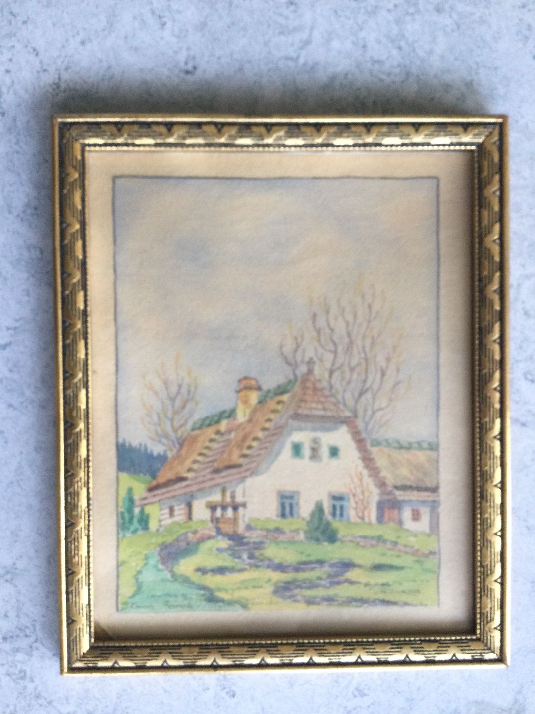 Akvarel af Vojtęch Kraupner - Hus i landskab Táborsko, Tjekkiet 1933.