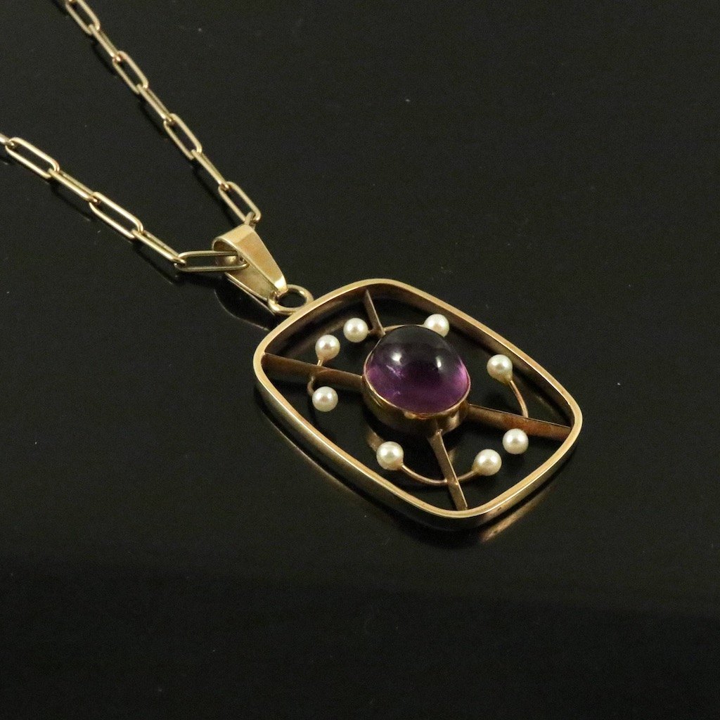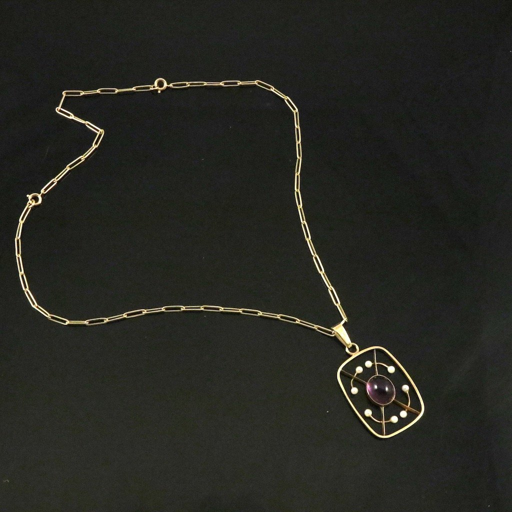 Bent Exner (1932-2006). 14k Gold Pendant with Amethyst and Pearls.