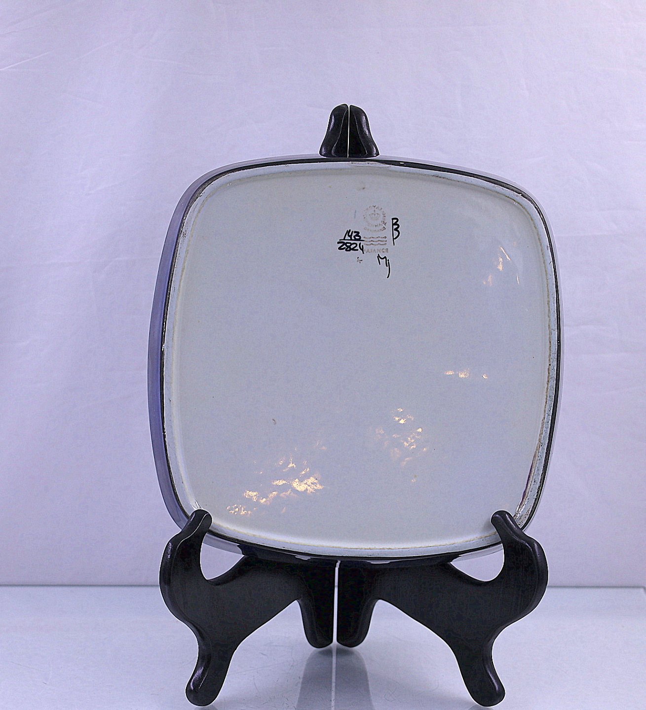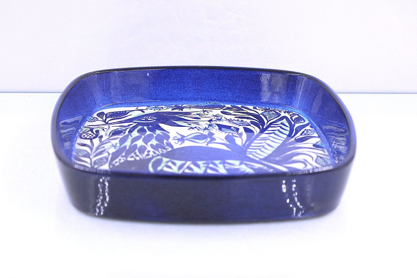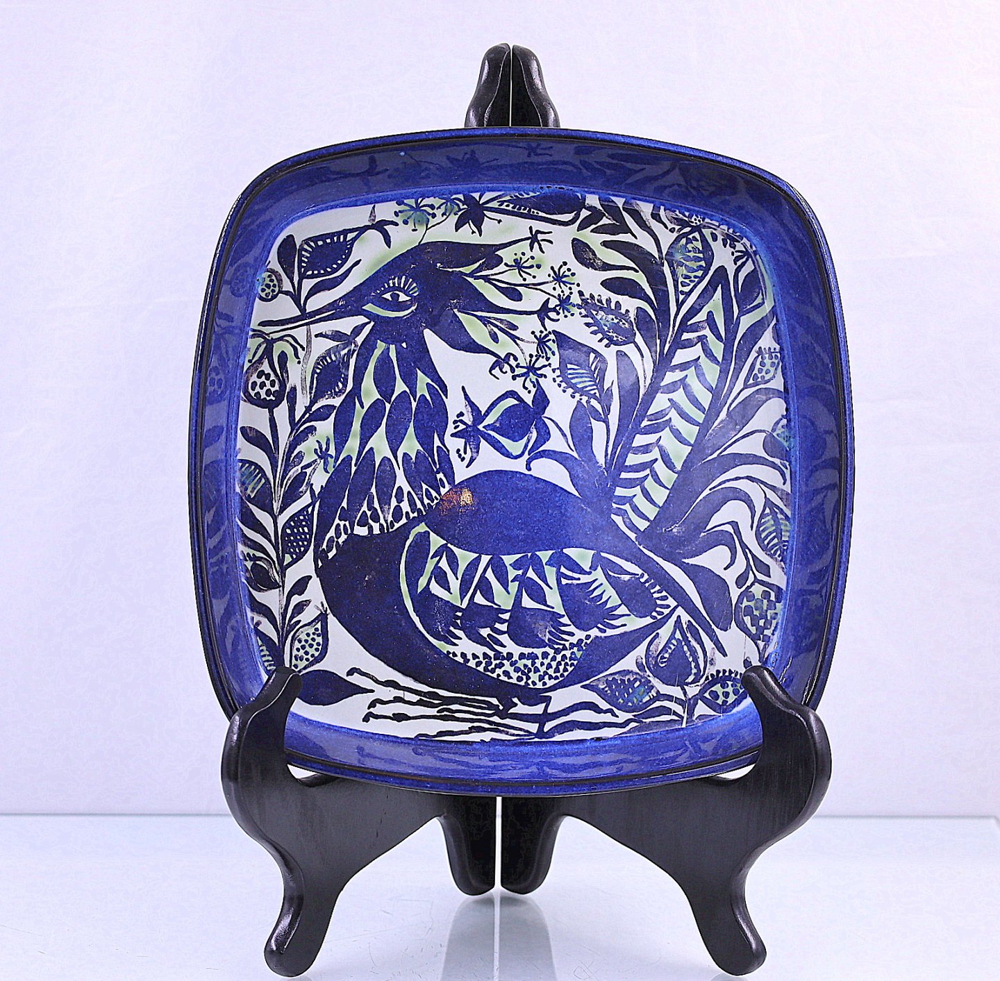 Tenera fajance fad, nr. 143/2824, dekoreret med en blå fantasi fugl.
