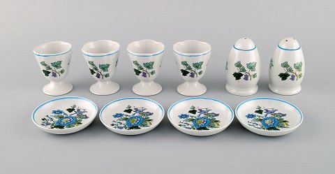 Spode, England. Fire Mulberry æggebægre, kaviarskåle og salt / peberbøsse i håndmalet porcelæn. 1960/70'erne.