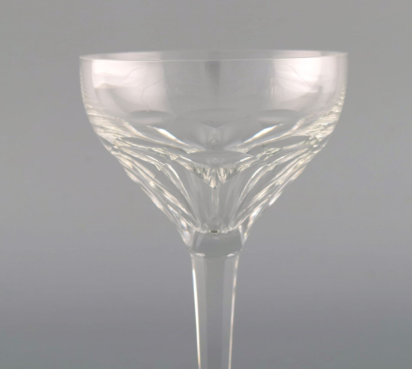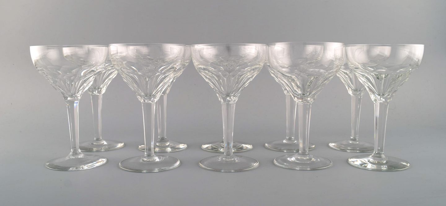 Val St. Lambert, Belgien. Ti rødvinsglas i klart mundblæst krystalglas. 1930'erne.