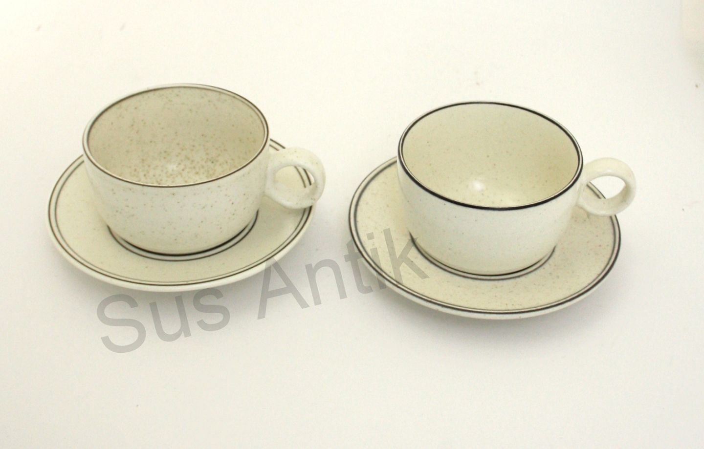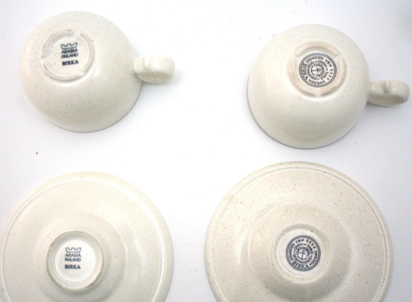 Text available in Danish: Gustavsberg senere Arabia, Birka, kaffekop med underkop. Designet af Stig Lindberg. Produceret i perioden 1973-1987. Mærke: Gustavsberg Stengods VDN S555 Sweden, owen, table, dishwater. Mærke: Arabia Finland.