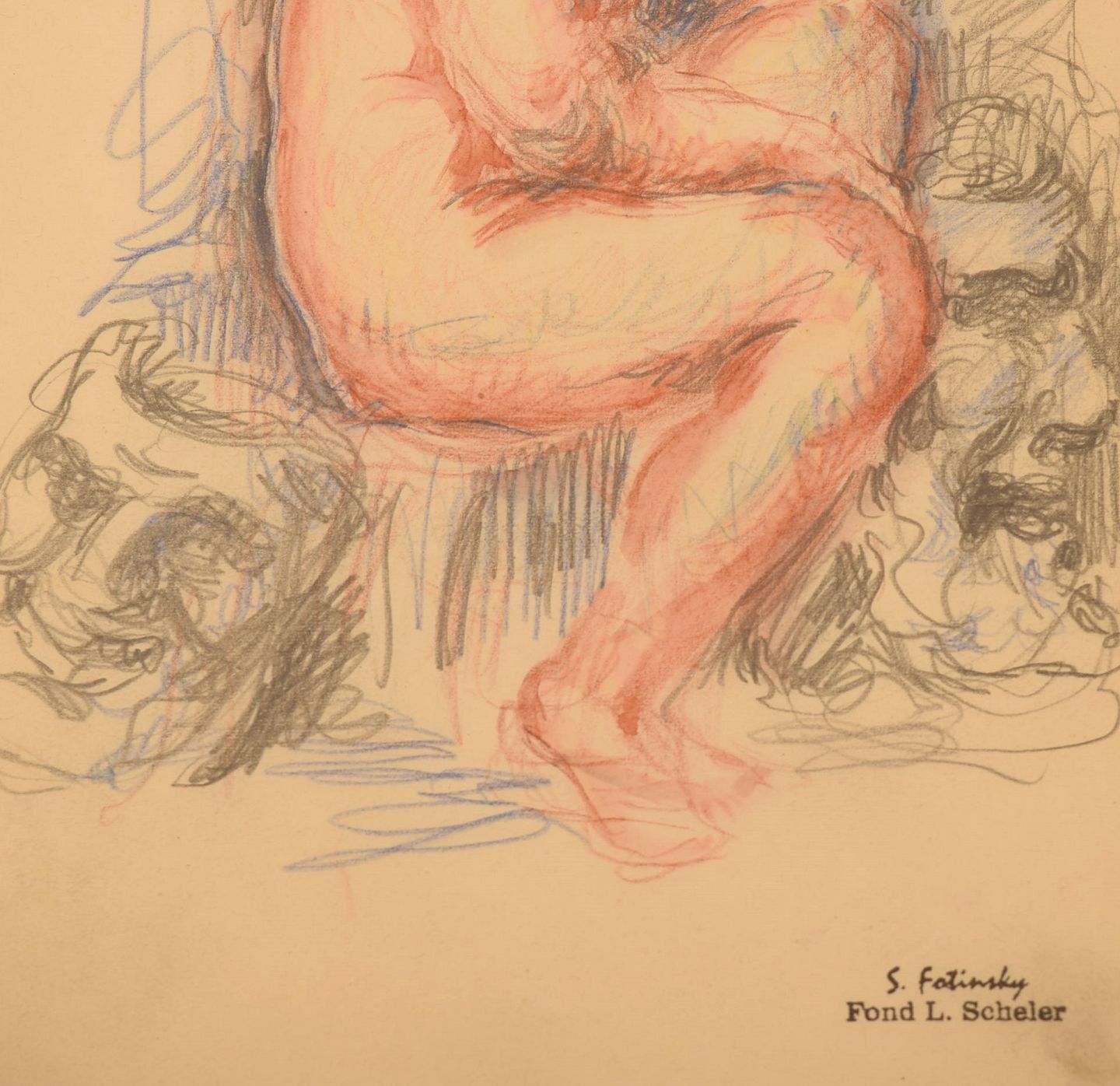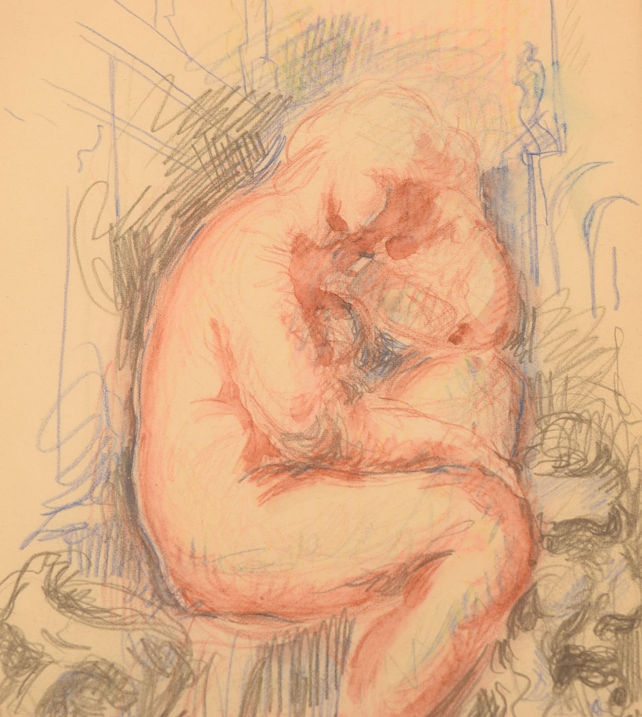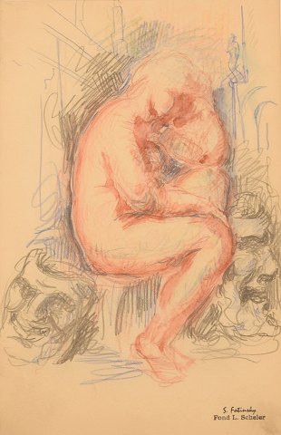Sergey Fatinsky (1887-1971), Russia. Lithographic print. Nude study with masks. Mid-20th century.