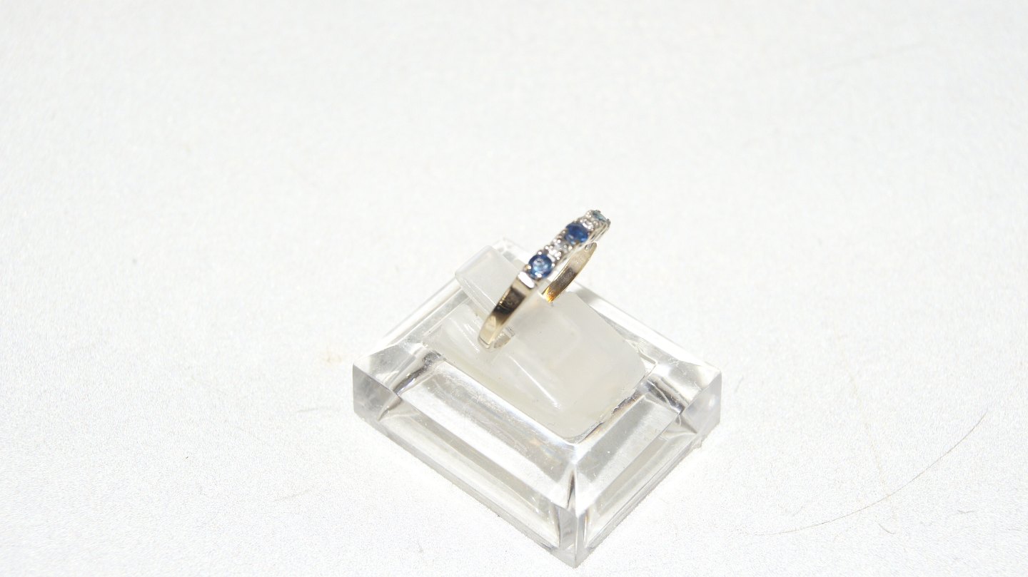 Ladies' ring with blue sapphire and diamonds in 14 carat gold