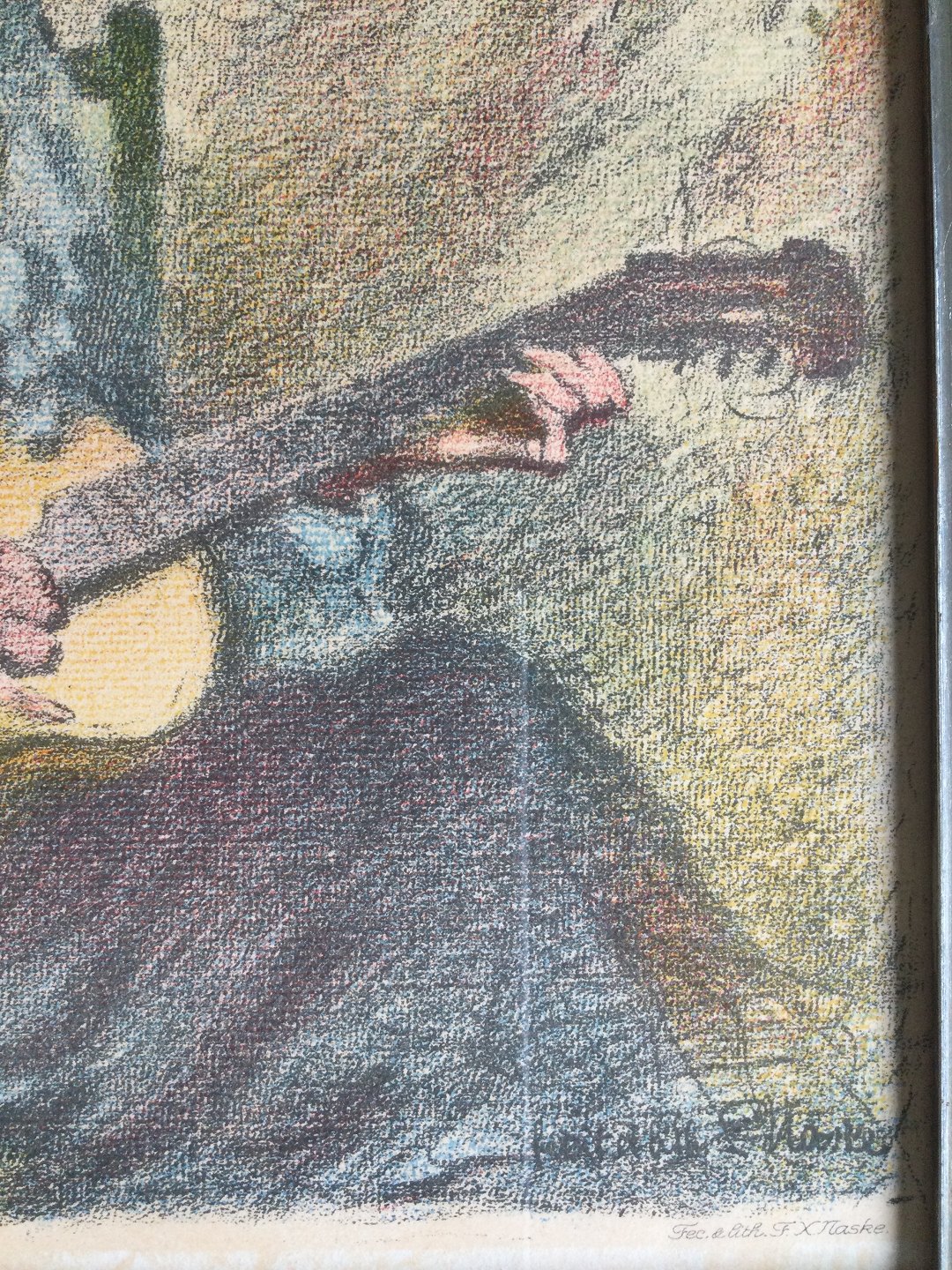 Farvelitografi af Frantisek Xaver Naske - Guitarspillende kvinde.