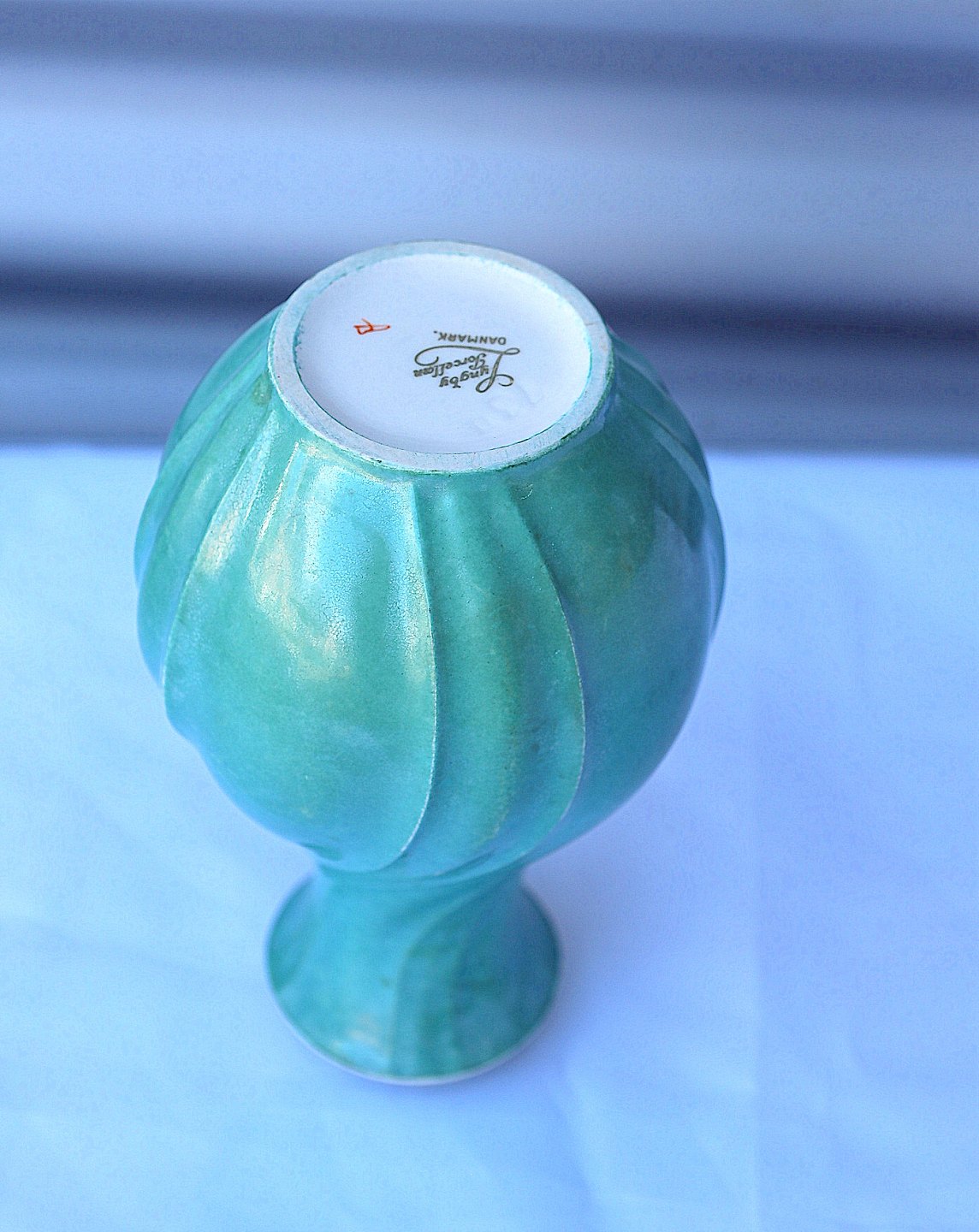 Vasen er mærket Lyngby Porcelæn, Danmark. 73 II