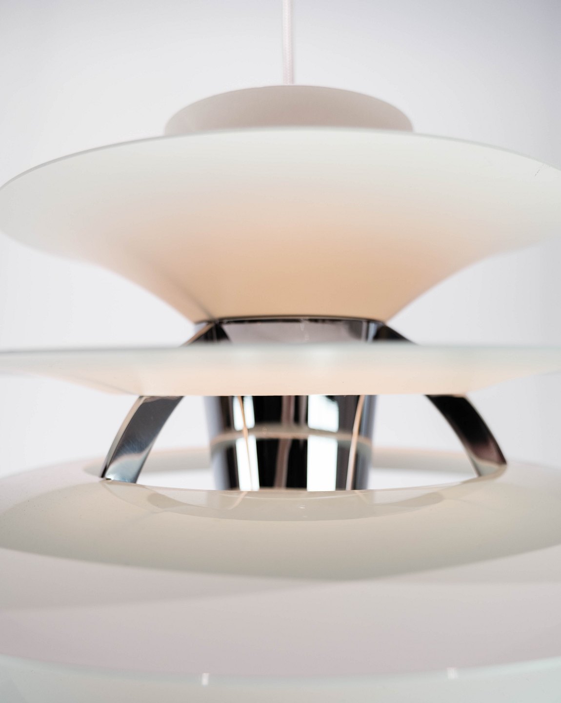 PH Snowball with white lacqured shades designed by Poul Henningsen and manufactured by Louis Poulsen.