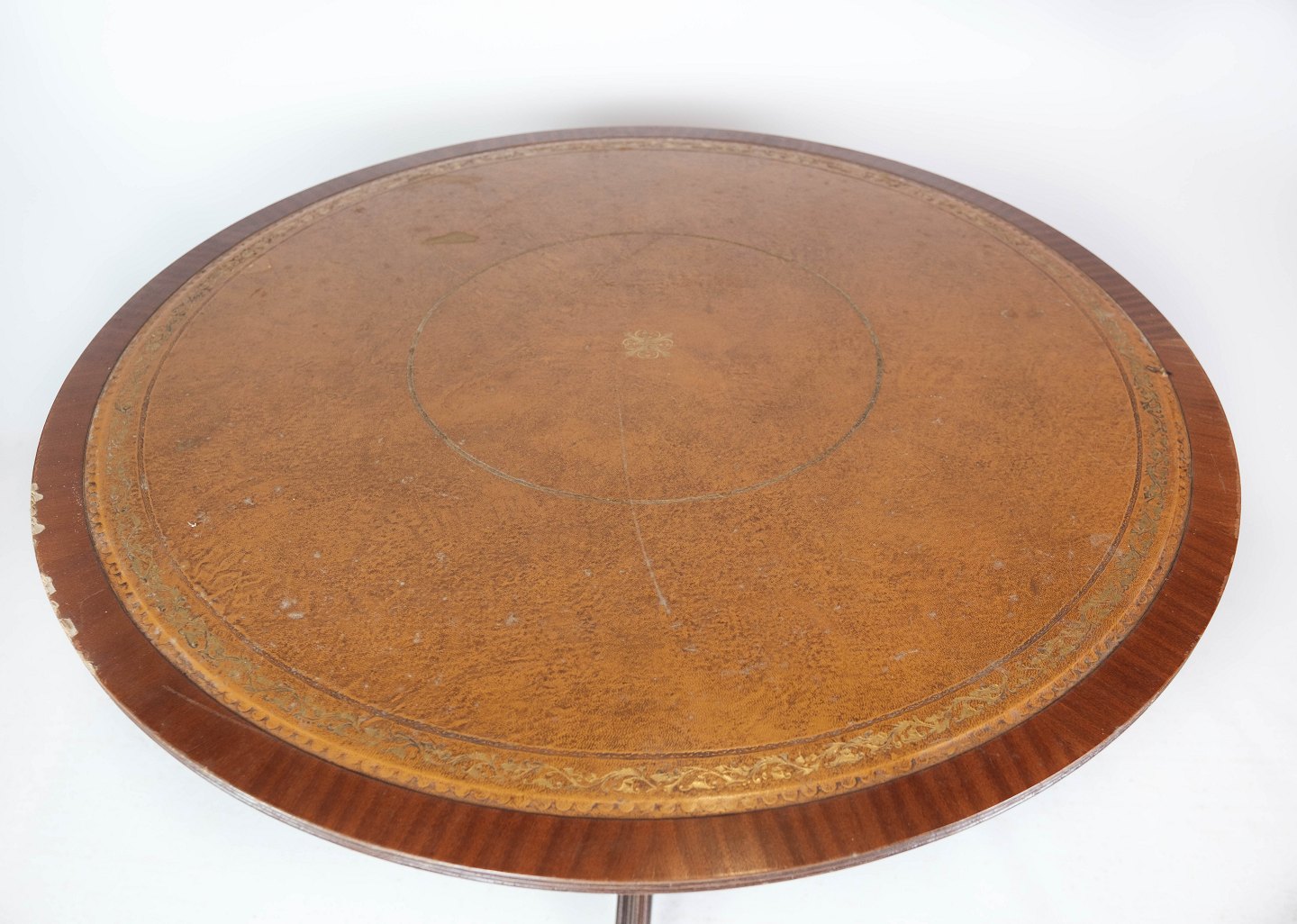 Antique dining table in mahogany with inlaid wood and leather, fra 1920erne.