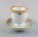 Bing & Grøndahl sovseskål i porcelæn med håndmalede blomster og gulddekoration. Flora Danica stil, 1920/30'erne.