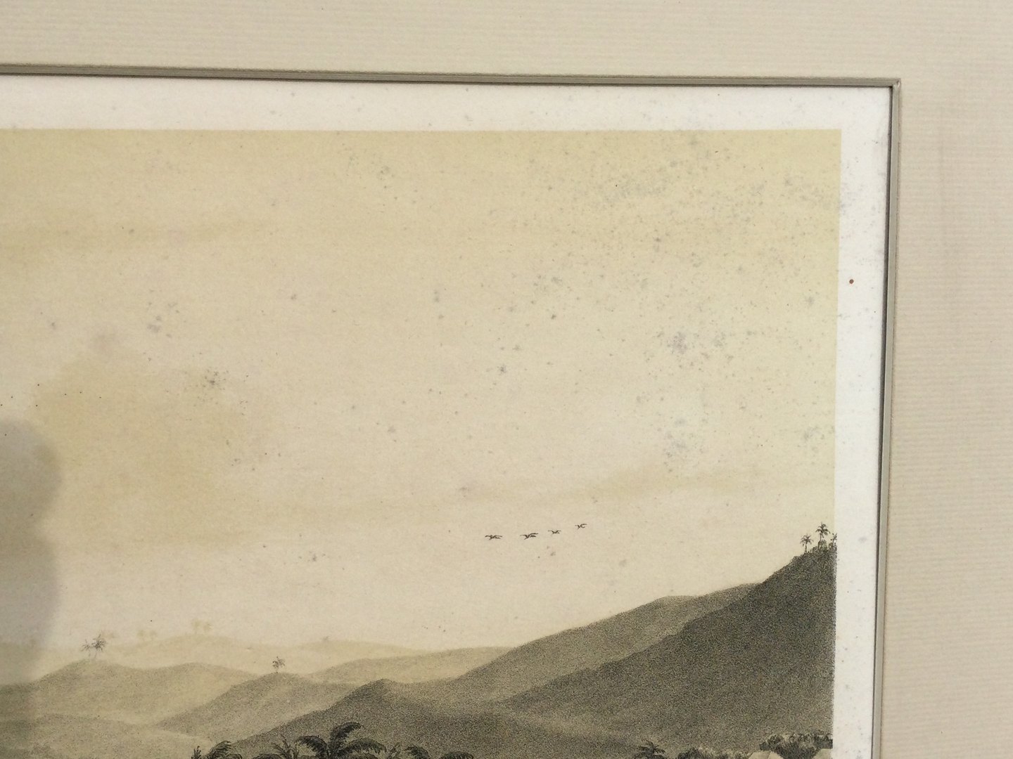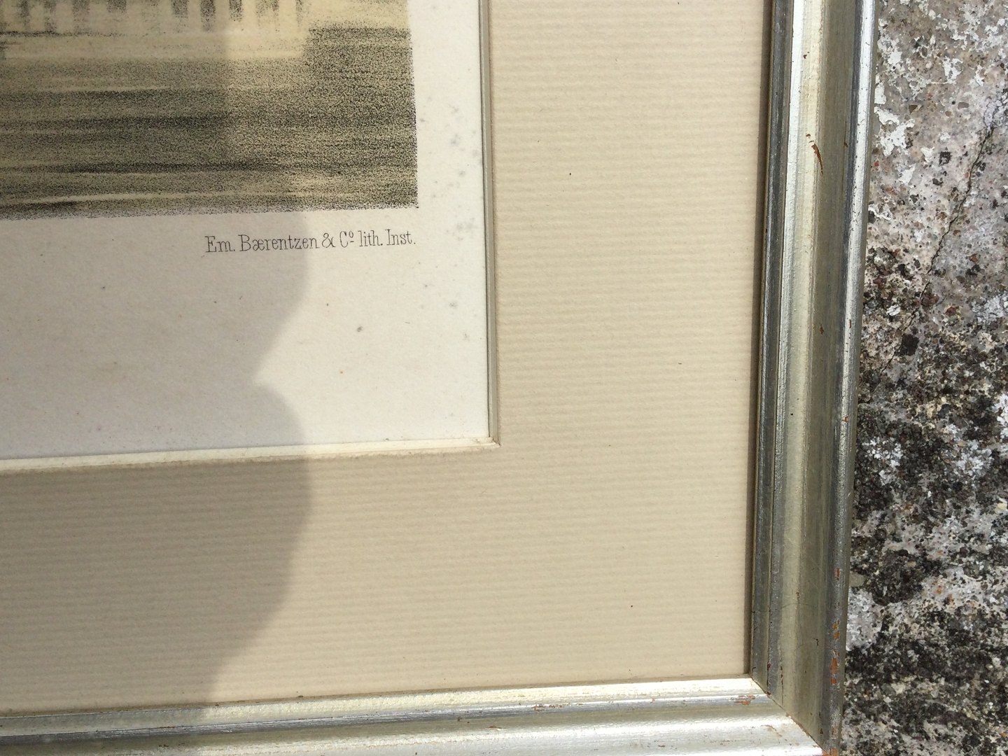 The lithograph appears framed but without glass and with a number of small gray spots, especially in the sky - see photo.