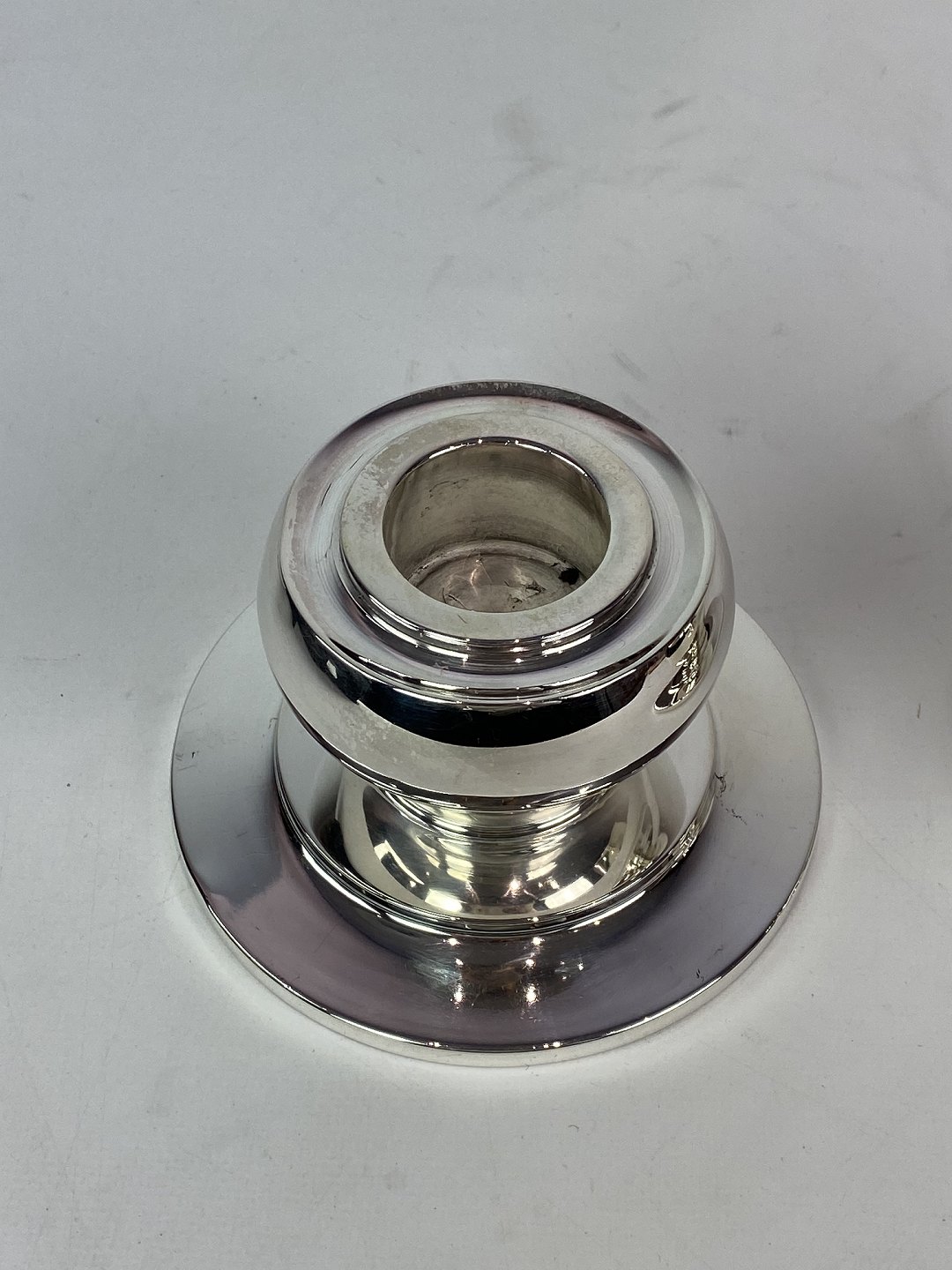 Set of two low candlesticks of 925 sterling and hallmarked silver, from the 1930s.