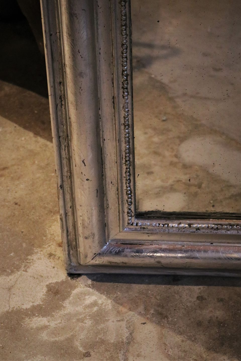 French 1800 century Louis Philippe silver fireplace mirror with fine decorated frame with pearl edge and original old mirror glass.