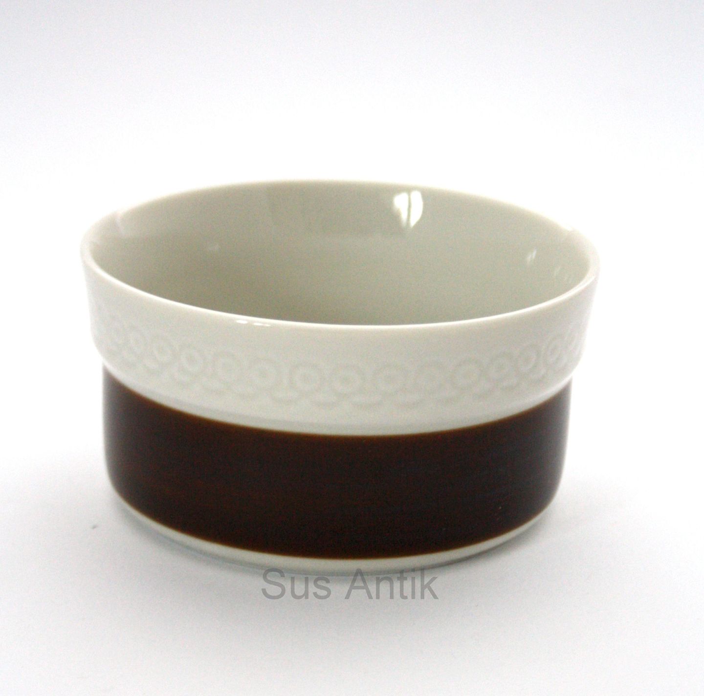 Rørstrand, Forma, hvidt porcelæn med brun kant. Designet af Olle Alberius. Sukkerskål. Højde 5 cm. Diameter 10 cm. Pris: 125 kr. stk. Lager: 1