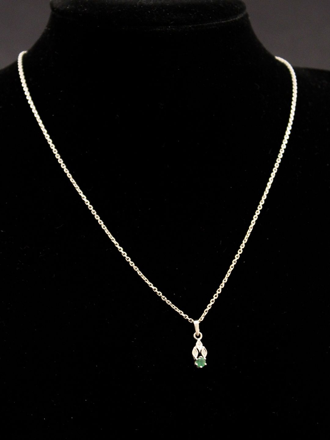 14 carat white gold necklace 38.5 cm. and pendant 0.5 x 1.2 cm. with jade item no. 480535