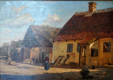På bagsiden label fra Carlottenborg. Titel: Gaardparti fra Lygtekroen. 300,- dkk. Vundet i Kunstforeningen af Kammerraad Nielsen til Vandbyholt. (Fortegnelse over Danske kunstnerens Arbejder. Carl Reitzel 1883.