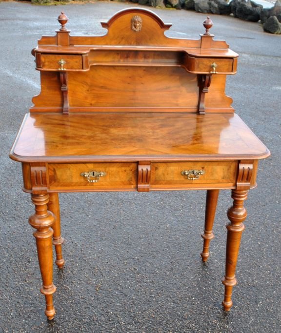 Damenschreibtisch aus poliertem Nussbaumholz, Dänemark des 19. Jahrhunderts.