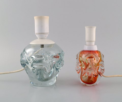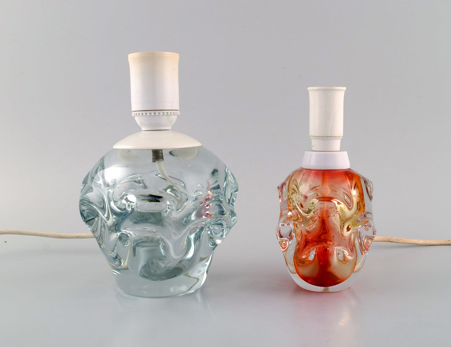Skandinavisk glaskunstner. To bordlamper i mundblæst kunstglas. Midt 1900-tallet.