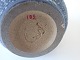 Text available in Danish: Arne Bang - lille vase med reliefdekoration med blå/grå glasur.