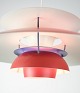 Ceiling lamp, model PH5, designed by Poul Henningsen in 1958. The lamp is in the colors red and blue. The light source used is 75W E27. The material is Aluminum. It is in good used condition.