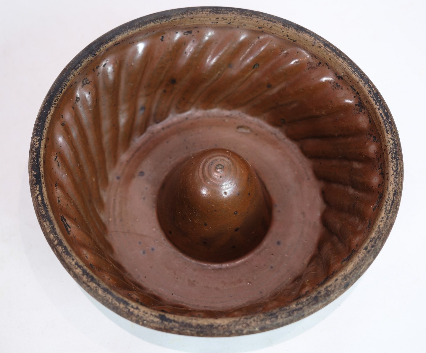 Earthenware pudding molds in brownish colors from around the 1930s.