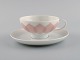 Bjørn Wiinblad for Rosenthal. Lotus porcelain service. 9 teacups with saucers decorated with pink lotus leaves. 1980s.