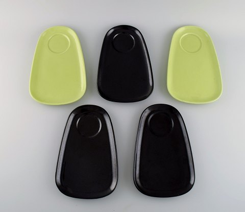 Stig Lindberg for Gustavsberg. Five large saucers for cups / mugs in glazed porcelain. Swedish design, 1960s.