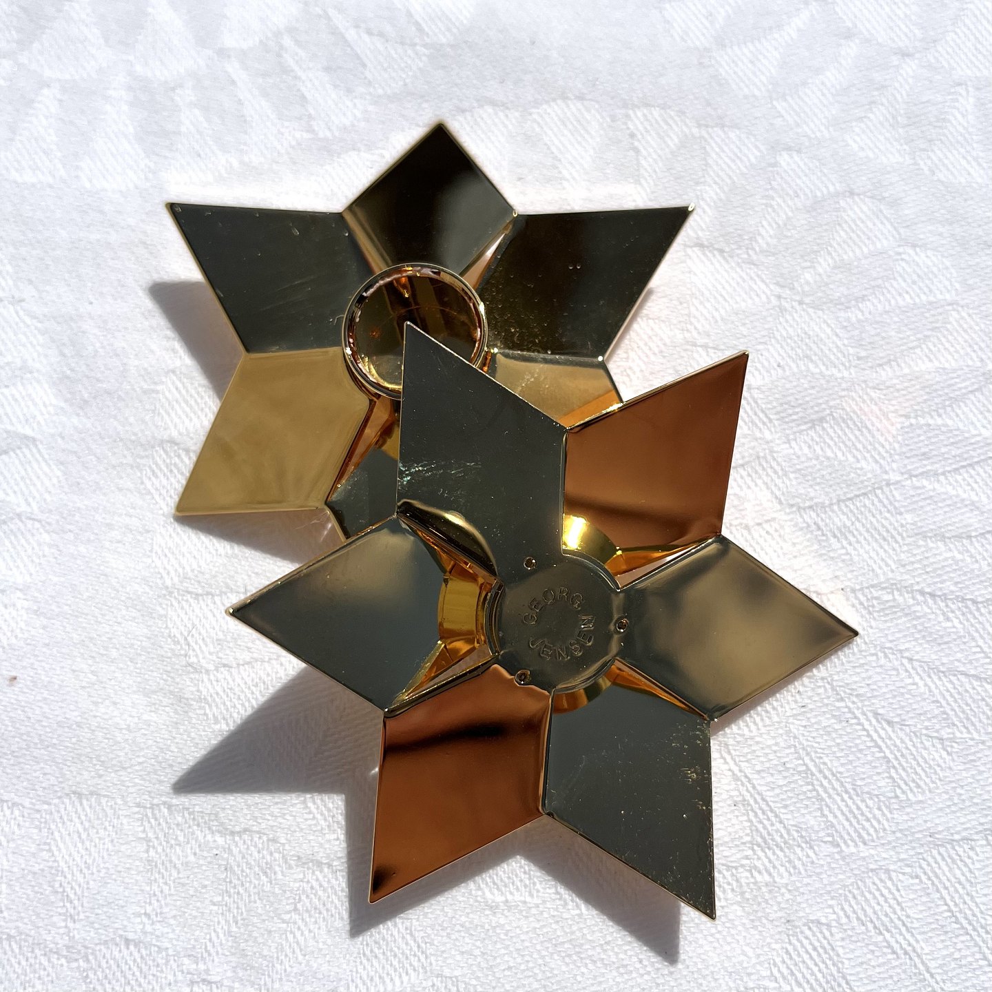 Gerog Jensen, Golden Christmas, 2 stk lysholder, Forgyldt stjerne, 6,5cm i diameter *Perfekt stand i original æske*