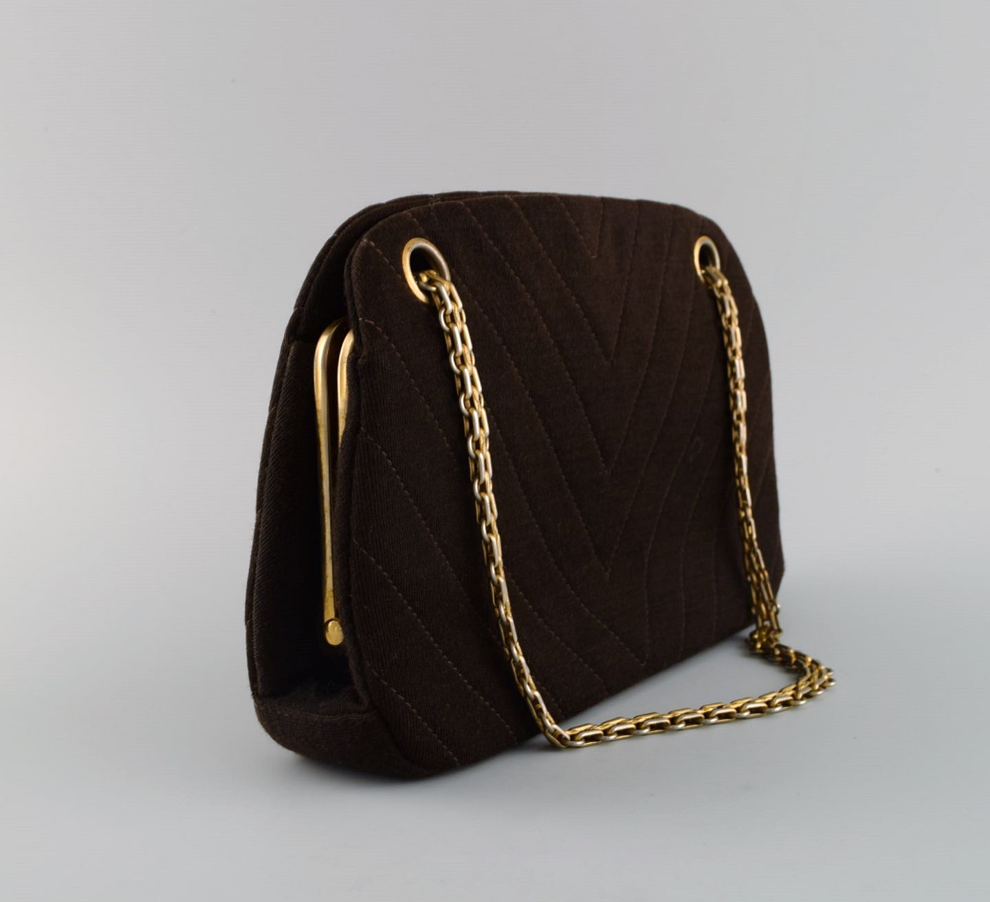 Vintage Chanel bag in brown velvet. Interior red velvet. Patterned seams. French design, 1960s.