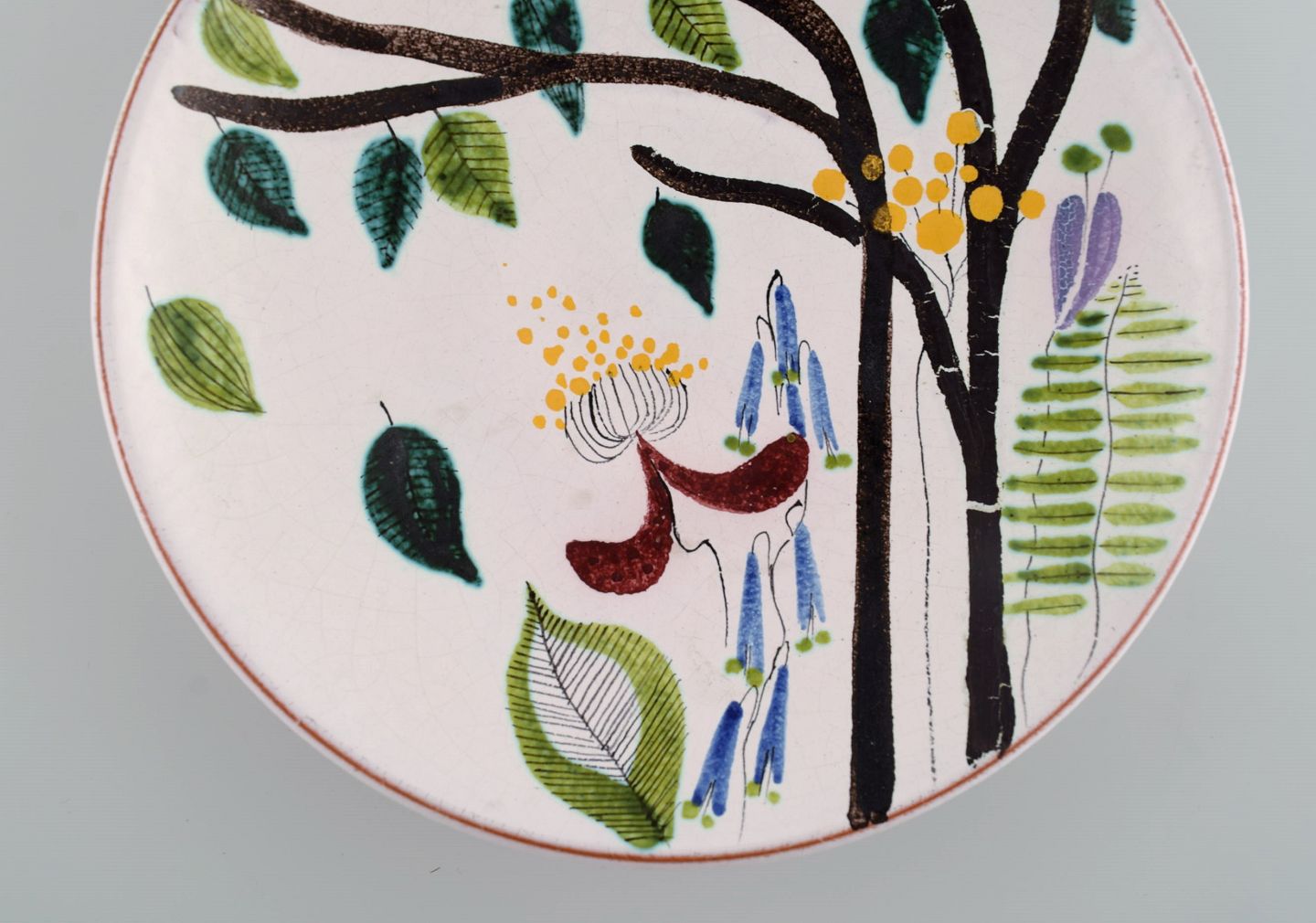 Stig Lindberg for Gustavsberg Studiohand. Round dish in glazed faience with hand-painted flowers. 1940s.