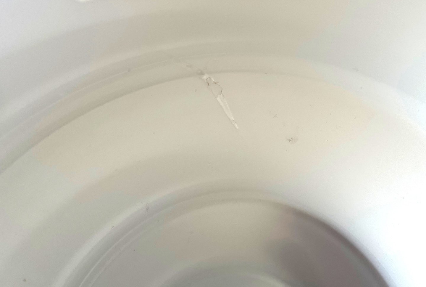 Text available in Danish: Holmegaard, Karen Blixen opalinehvid vase stor størrelse. Designet af Anja Kjær i 2000. Vasens form er inspireret af afrikanske kvinders hals og armringe. Højde 30,5 cm. Diameter 17,5 cm. OBS der er 2 indvendige produktionsfejl. Den øverste som en revne i glasset, den nederste som en boble, den kan ses udefra. Pris: 400 kr. stk. Lager: 1
