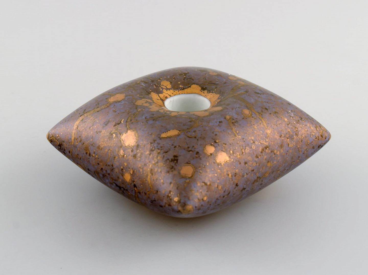 H. Dresler for Rosenthal. Vase og lysholder i håndmalet porcelæn. Smuk marmoreret gulddekoration. 1980'erne.