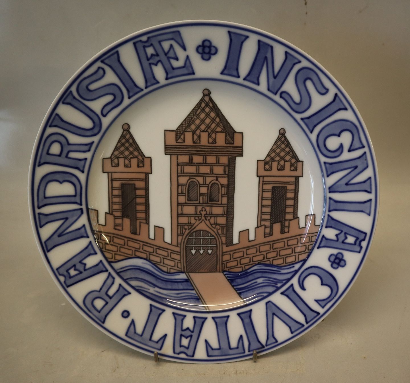B&G Randerusiæ Insignia CivitaTown Plates with Coat of Arms of Randers: Bridge and towers Signed MDJ 24.2 cm Martha Dahl Jensen. Bing & Groendahl Town PLates with Coat of Arms of Copenhagen Thre Towers Originally designed by Effie Hergermann-Lindencrone Marked with the three Royal Towers of Copenhagen. Bing & Groendahl In mint and nice condition