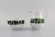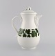 Meissen Green Ivy Vine. Coffee pot, sugar bowl and creamer in hand-painted porcelain. Lid modeled with rose bud. 1940's.