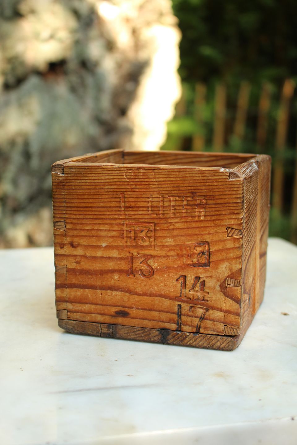 Decorative, old Swedish grain goal in wood with a really nice patina.
