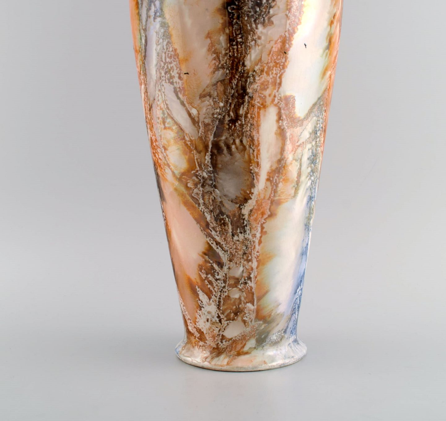 Arabia, Finland. Large art deco vase in glazed faience. Beautiful marbled glaze. 1920/30s.