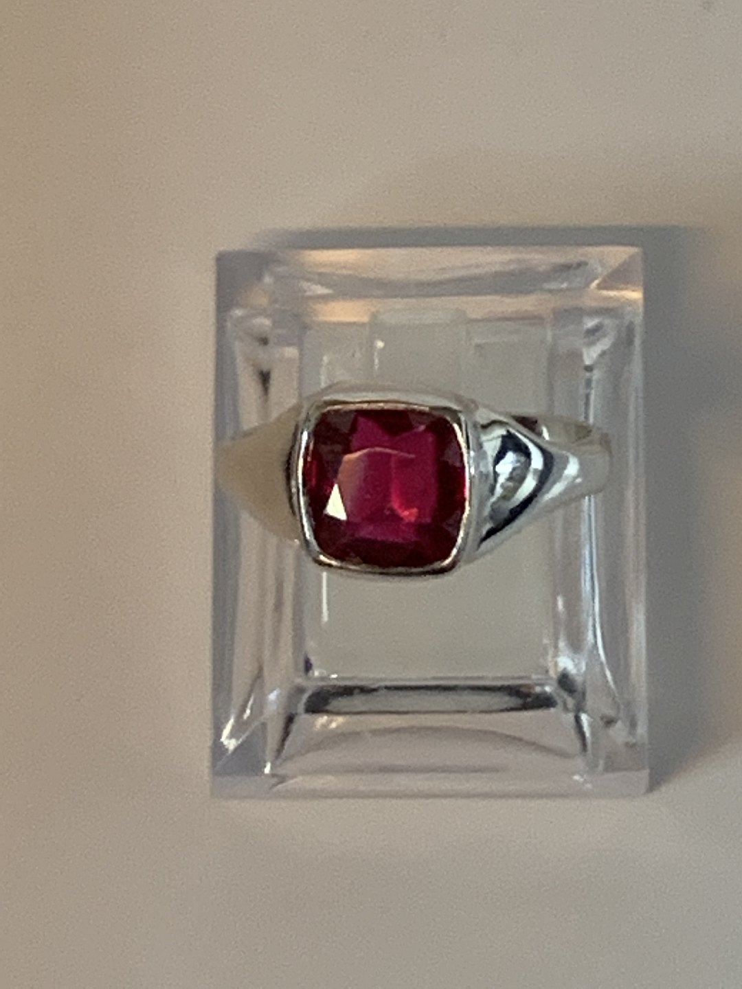 Ring med rød sten i 14 karat Hvidguld.