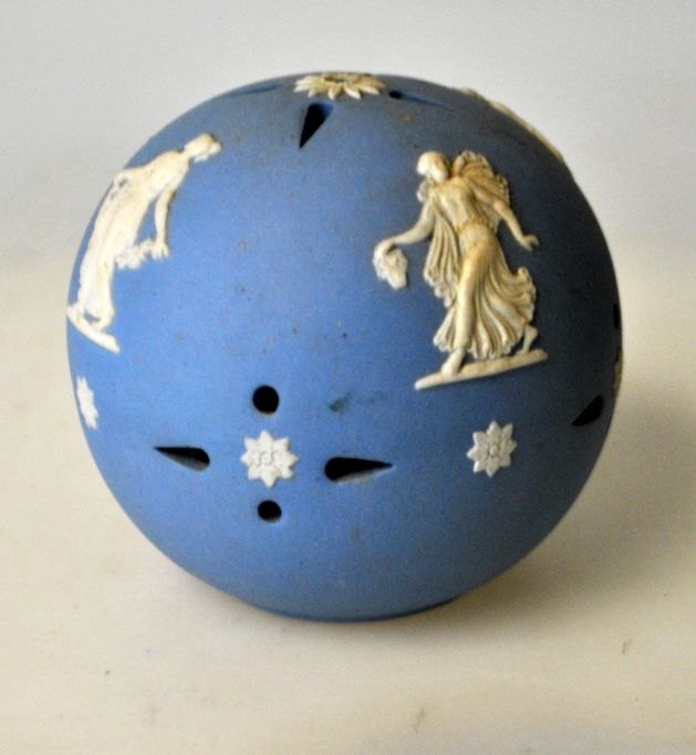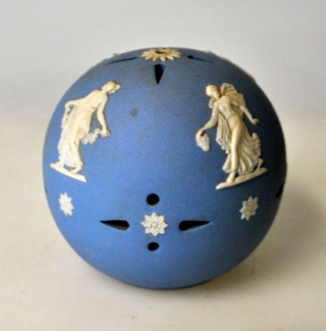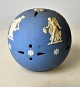 Wedgewood blue jasper bisquit porcelain pomander, 20th century England. Decorated with classic female figures. Stamped. Dia.: 7 cm.