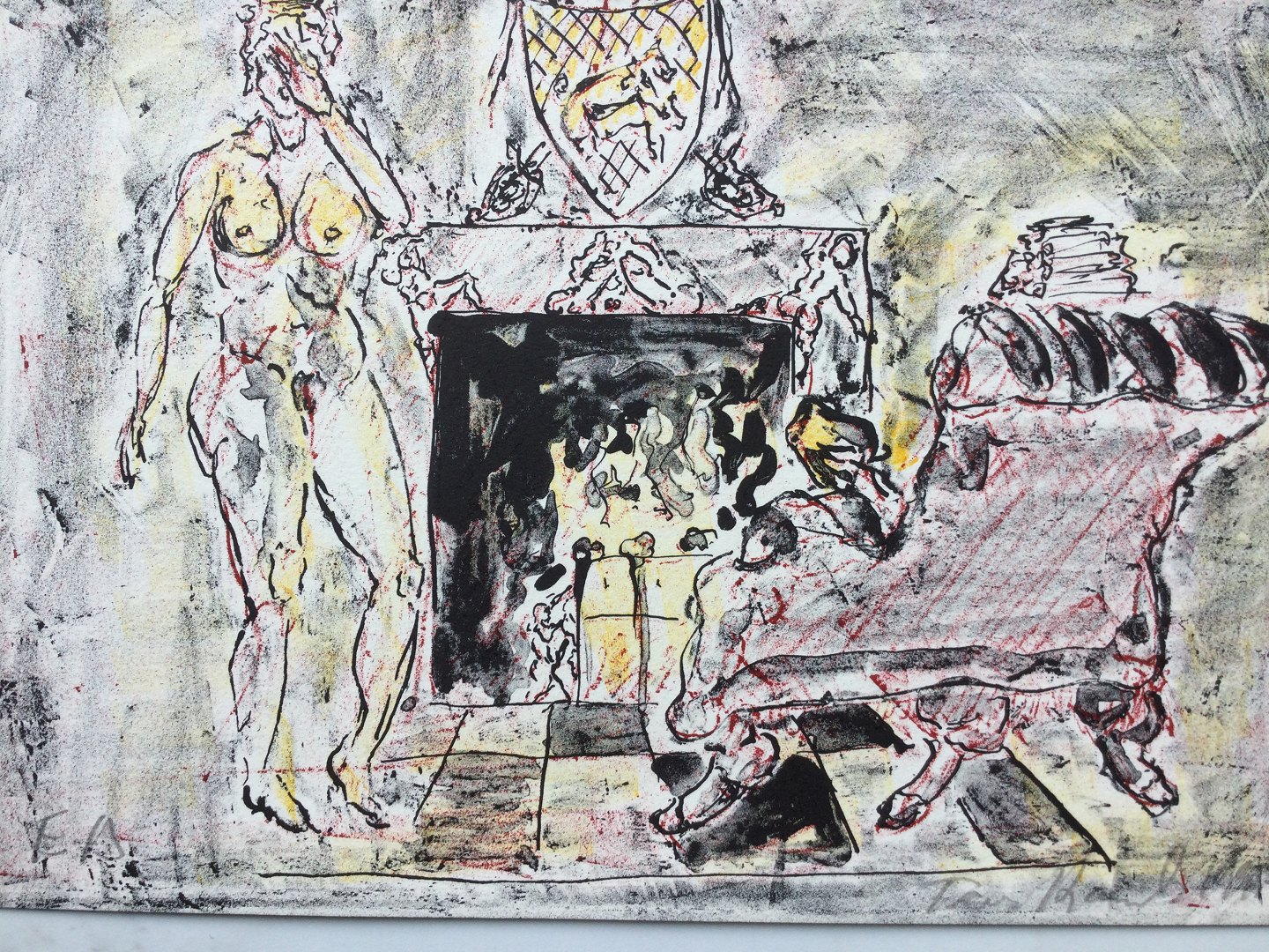 Farvelitografi af Frans Kannik 1998 - Erotisk komposition.