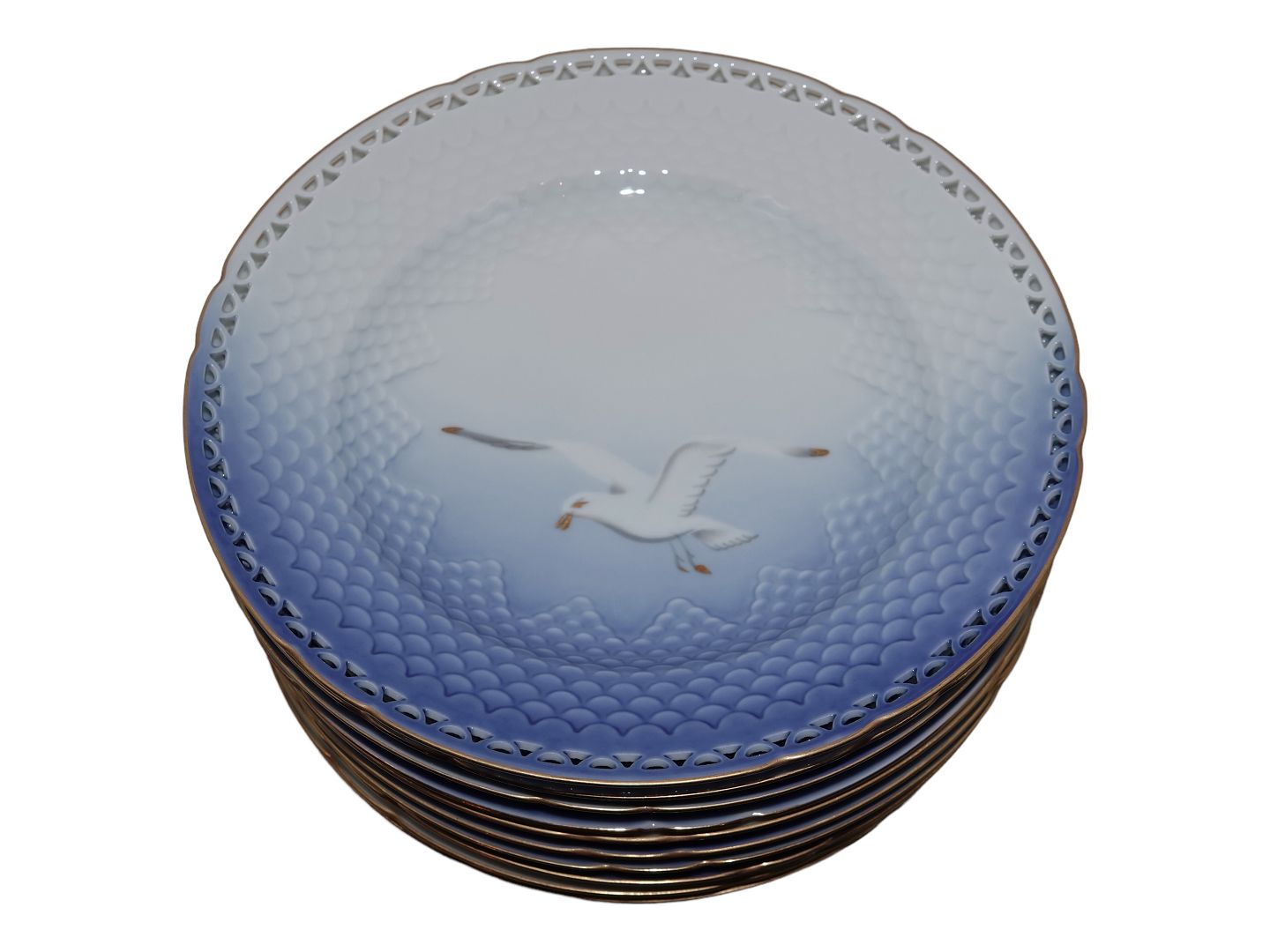 Bing & Grondahl Seagull with gold edge, dinner plate with pierced border.