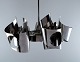 Max Sauze (b.1933), French designer. Large ceiling pendant with five arms, in aluminium.