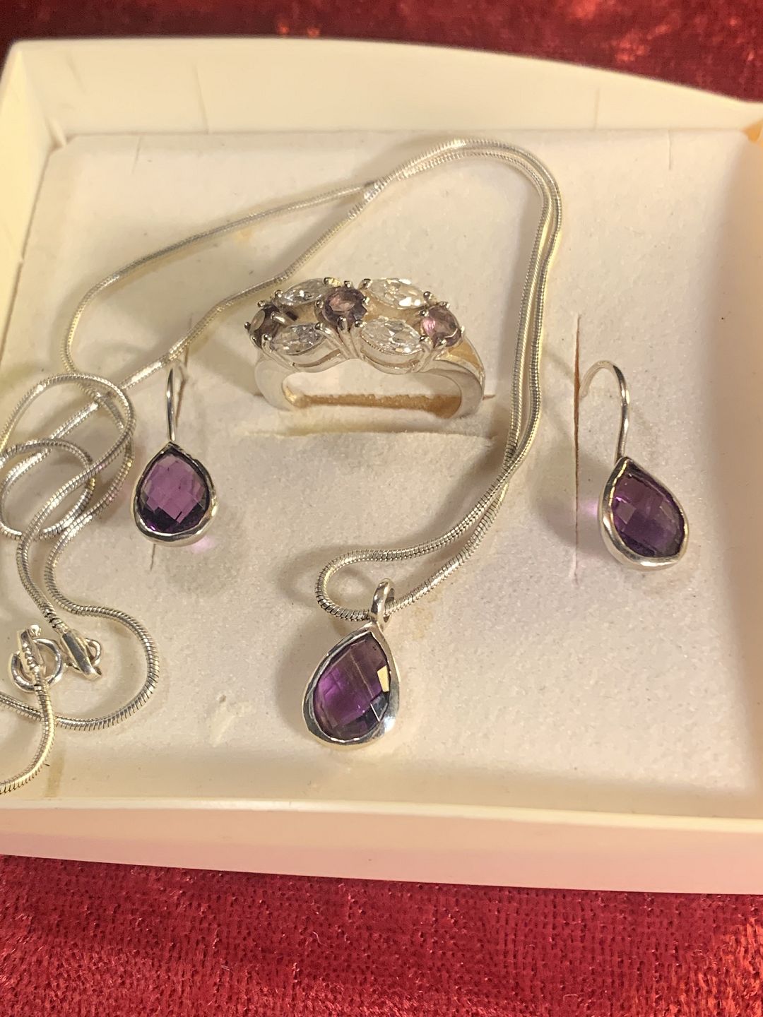 Set in silver 925 necklaces together with pendants and earrings and a ring.