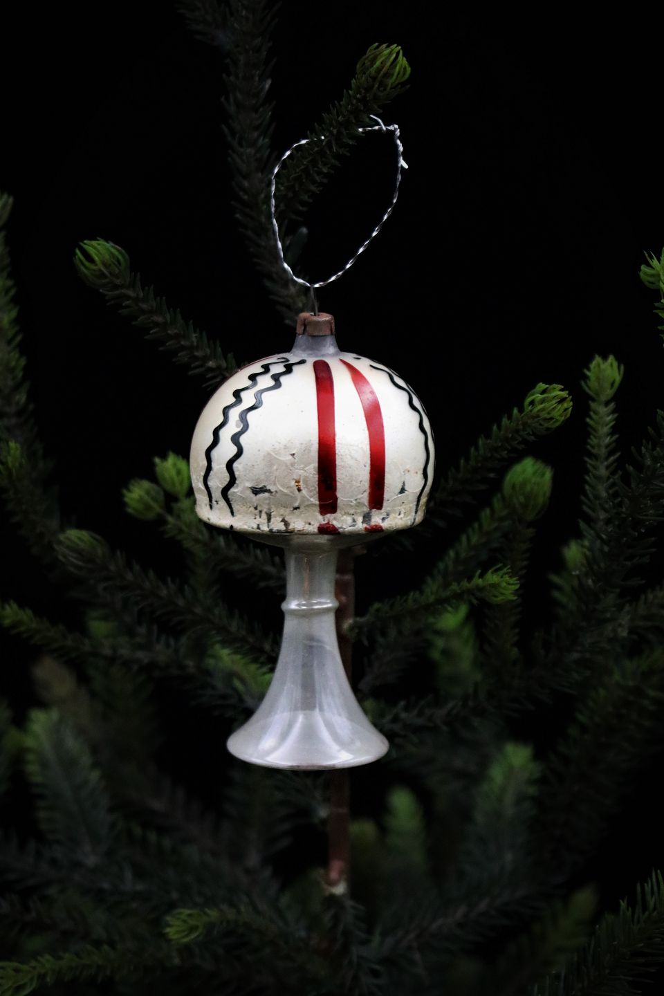Old glass Christmas ornament in the form of a lamp from around 1920.