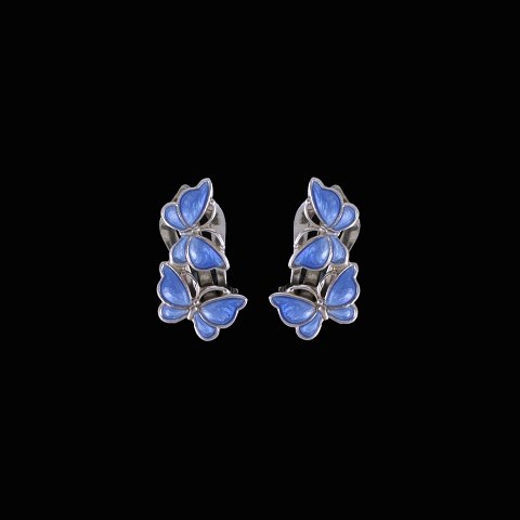 Volmer Bahner. Øreklips i sterling sølv med blå emalje