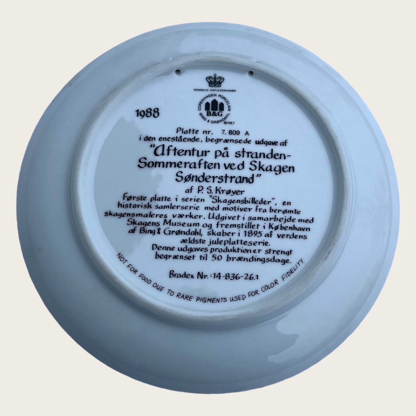 Bing & Grøndahl, Skagensmalerne, 1988, Plate no. 1, “Evening walk on the beach”, P.S. Krøyer *Perfect condition*