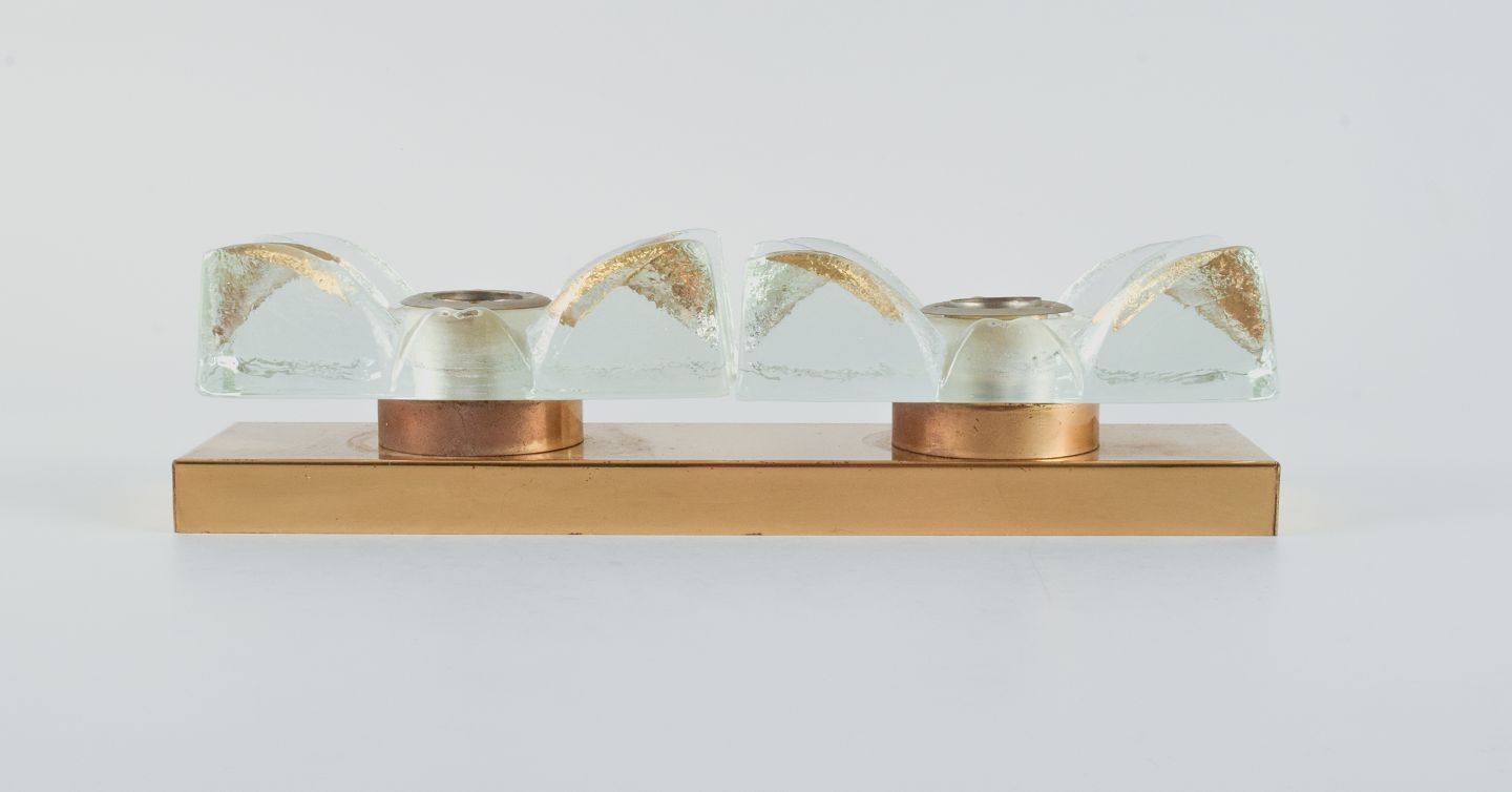 "Sische", Germany, designer wall lamp in clear glass and brass.