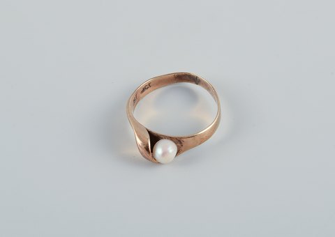 Dansk guldsmed, modernistisk guldring prydet med kulturperle.